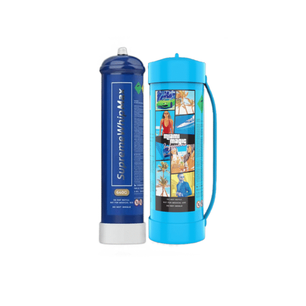 1x MEGA 3.3L Miami Magic Cylinder + 1x SupremeWhip Max 680g Tank — a powerful bundle delivering the equivalent of over 345 standard cream chargers in total. Designed for kitchens that demand efficiency and scale, this high-capacity combo ensures smooth, food-grade performance with fewer interruptions. Ideal for whipping, foams, and infusions in both professional and home settings. Includes test-release nozzles for safety and easy disposal. Culinary use only.